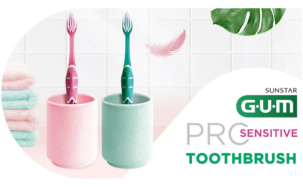 GUM PRO SENSITIVE Toothbrush helps relieve tooth and gum sensitivity with ultra gentle and deep cleaning. The ultra-thin tip multi-level bristles reach deeper* under the gumline to help gently clean the sensitive areas, while the handle grip design naturally positions the hand at a 45° angle for optimal cleaning.